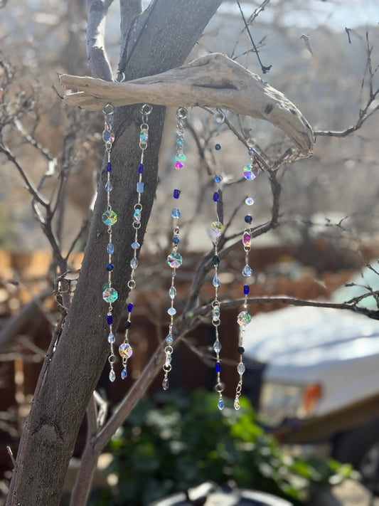 Coastal Beaded Suncatcher with Driftwood | Ocean Blue Hanging Decor