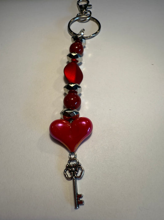 Red Heart Beaded Keychain / Purse Charm